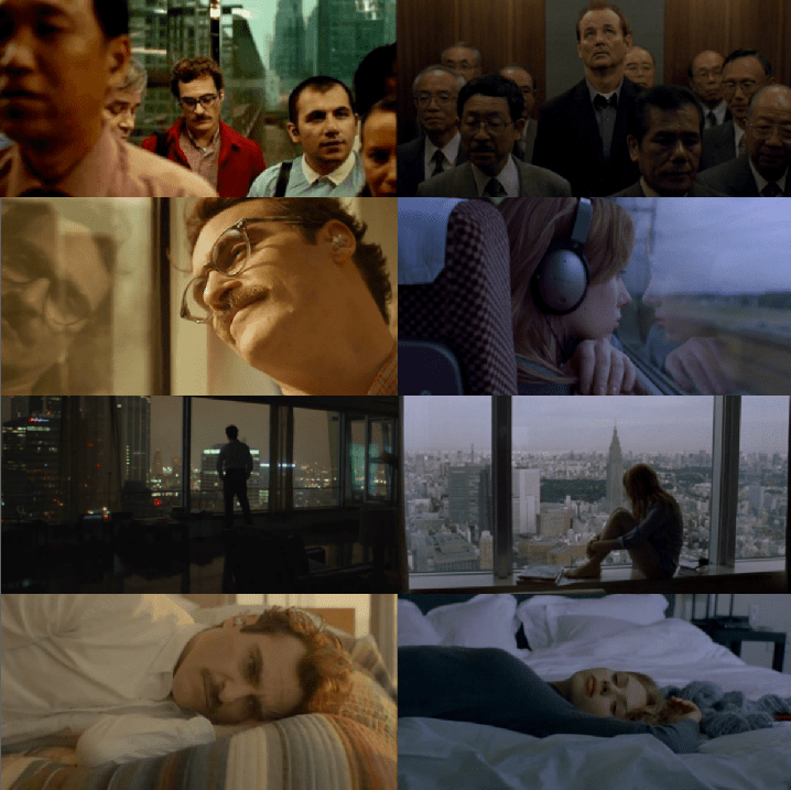 Algo que es recurrente en ambas cintas, son esos largos momentos contemplativos de los protagonistas a los paisajes urbanos, ella en lo alto de su habitación en un hotel en Tokio y él en su solitario apartamento de Los Ángeles (que en realidad es Shanghái). Los personajes parecen aprisionados desde sus rascacielos ante la inmensidad de estas dos ciudades que consiguen empequeñecerlos, donde también se encuentran encerrados, solitarios y estancados cuando en realidad hay todo un mundo fuera que no se atreven a descubrir.